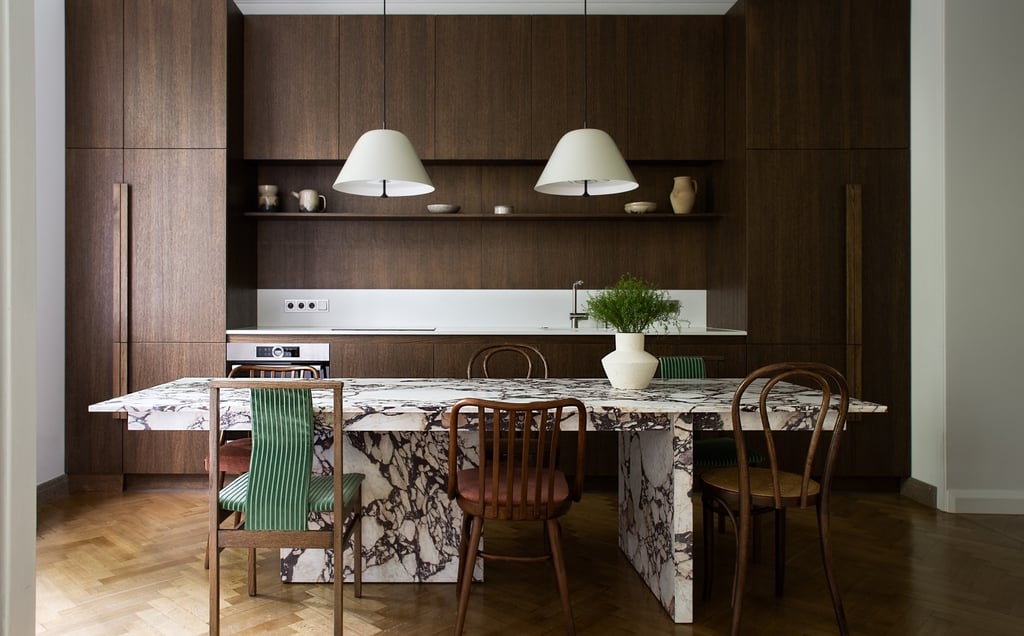 Milda: Kol akmuo atkeliauja iki mūsų, jis praeina daug procesų: logistiką, gamybą, montavimą, todėl mūsų kraštuose jis tampa brangia medžiaga. Pradedame žiūrėti kaip į prabangos elementą ir norim, kad jis visada atrodytų kaip naujas. Tuo tarpu Italijoje natūralus akmuo dažnai pigesnis negu keramikos plytelės. Ir žmonėms gražu, kai akmuo natūraliai dėvisi ir pasakoja namų istoriją. Pavyzdžiui, Carraros marmuras panaudojamas kaip pagrindinis darbinis paviršius, ir kuo jis labiau subraižytas, tuo gražesnis, kuo labiau nudėvėtas, tuo labiau vertinamas.