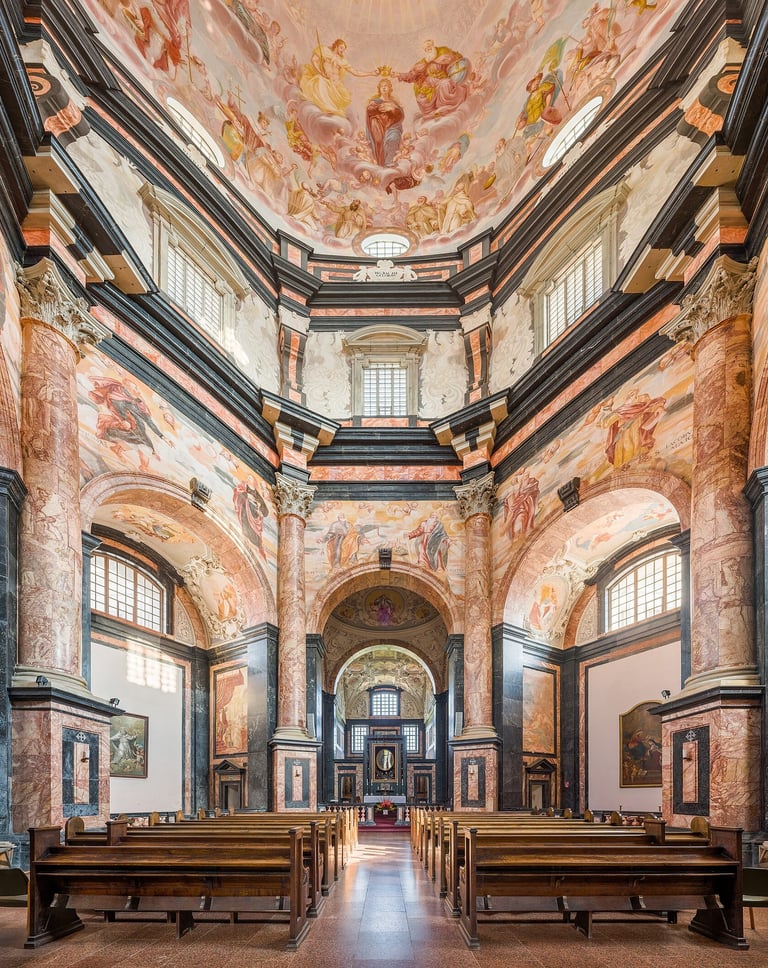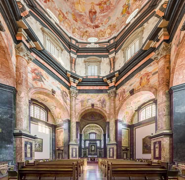 Pažaislio kupolo aukštis 50 metrų. Nuo 30 metrų aukščio dekoras nebe iš akmens, o tapytas. Taigi voliutos jau ne tūrinės, o tampa freskomis. Todėl arčiau žemės vyko akmens restauracija, o jau aukščiau – tapybos. Apskritai restauracija buvo keturių krypčių: lipdyba, tapyba, medžio ir akmens restauracija.