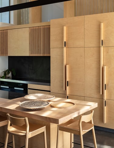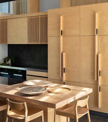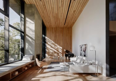 Saulė yra laimė. Esame rašę apie tai, kad dirbtinės šviesos gali būti per daug. Apie natūralų apšvietimą turbūt reikėtų sakyti atvirkščiai – jo tegul būna kuo daugiau. Saulės spinduliai namams suteikia gyvybės, krentantys šešėliai išryškina tekstūras, o besikeičianti šviesos spalva – nuo ryto rausvos iki vakaro auksinės – keičia ir patį interjerą. Saulė teigiamai veikia mūsų cirkadinius ritmus ir pakelia nuotaiką. Dėl to projektuojant namus svarbu įsileisti ir tinkamai suvaldyti natūralią šviesą.