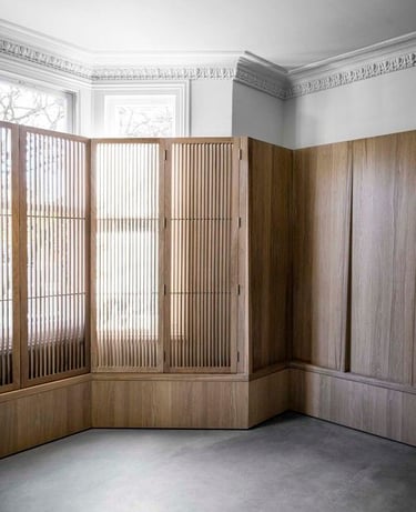 Taip pat galima surasti ir labiau originalių, ne tokių tradicinių langų pridengimo būdų. Interjere vientisumą kuria sienų panelių organiškas pratęsimas, paverčiant jas ir perforuotomis langinėmis. Funkcionalu ir gražu panaudoti perforuoto metalo plokštumas ant vertikalios ašies, taip sukuriant ne tik priedangą, bet ir stilingą interjero detalę. Kartais nuo užuolaidų pabėgti padeda tiesiog daugiau fantazijos ir drąsos.