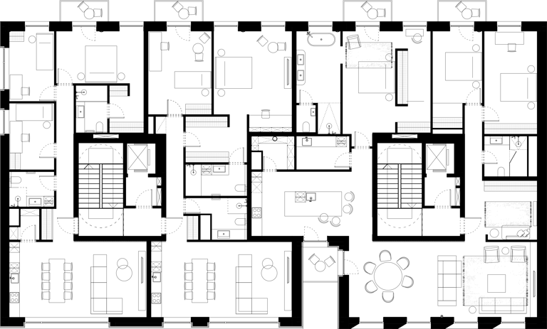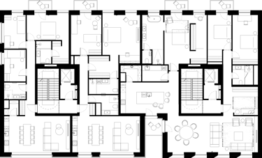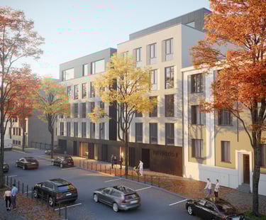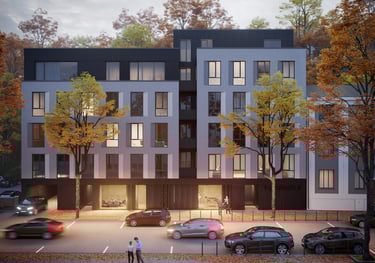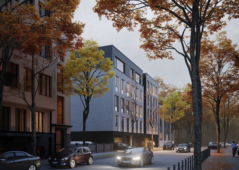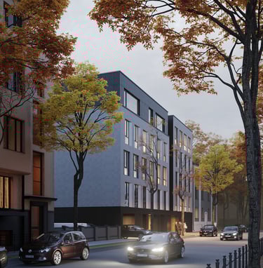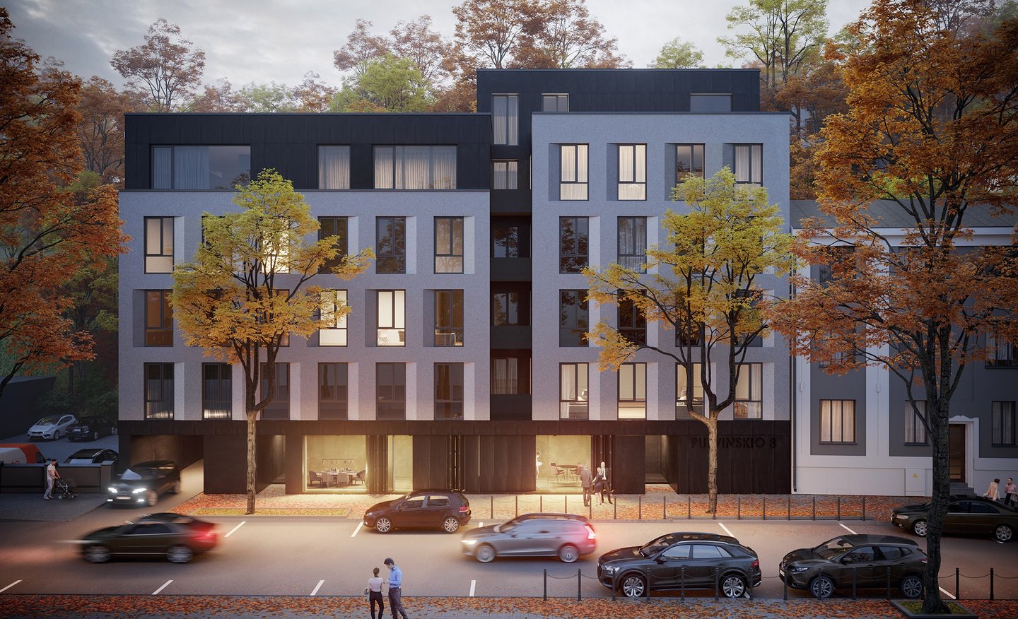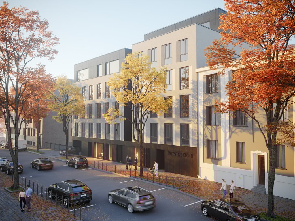 Daugiabučio gyvenamojo namo projektas maksimaliai išsaugo kultūros paveldo vietovės vertingąsias savybes. Išlaikomas perimetrinis V. Putvinskio gatvės užstatymo pobūdis. Paprastą pastato stačiakampio formą sudalina “įkirpimas”, kuris žymi istorinį posesijų ribų išsidėstymą. Taip pastatas vizualiai sudalinamas į du atskirus tūrius, pabrėžiant posesijos svarbą. Toks tūrių suskaidymas taip pat pastatą “palengvina” vizualiai priartindamas fasadų mastelį prie gatvėje būdingo užstatymo. Tūrį skaido reguliarus langų ritmas, būdingas tarpukario architektūrai. Langai yra dideli, modernūs, bet simetriškai ir ritmiškai išsidėstę fasaduose. Fasadams gylio suteikia įstrižos langų angokraščių plokšumos. Pirmas aukštas išryškinamas storo metalo lakštų apdaila, o likęs pastatas tinkuojamas granitiniu tinku.