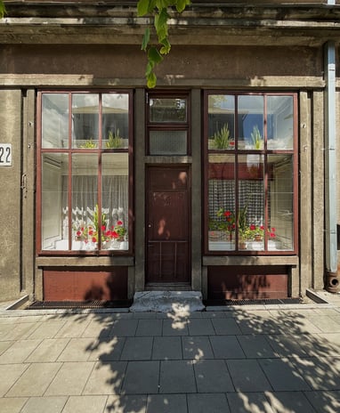 Viskas prasidėjo nuo begonijų. Tiesiai prieš mūsų ofiso langus kasdien matome turbūt gražiausiai apželdintą Kauno vitriną. Labai nestandartinis langų skaidymas - aukšti gražių proporcijų langai sudalinti į du aukštus. Nėriniuotos visada užtrauktos užuolaidos intrigavo sužinoti, kas už jų gyvena. Kažkodėl įsivaizdavome seną tarpukarinę moterėlę su skrybėle, lipančią ant kopėčių tų antro aukšto vazonų palaistyti. Vieną dieną nusprendėme išsiaiškinti. Su pyragu rankose pasibeldėm į duris, bet deja, niekas jų neatidarė.